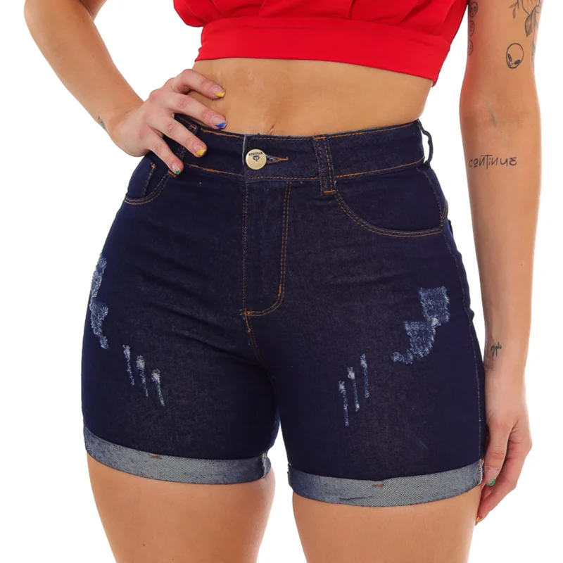 Estação: Durante toda a temporada Tipo de tecido: Jeans Idade: MIDDLE AGE Tipo de ajuste: REGULAR Tipo de modelo: GEOMETRIC Estilo: Casual Sexo: WOMEN Tipo de Item: calção Shorts Feminino Jeans Escuro Detonado 2023 Verão